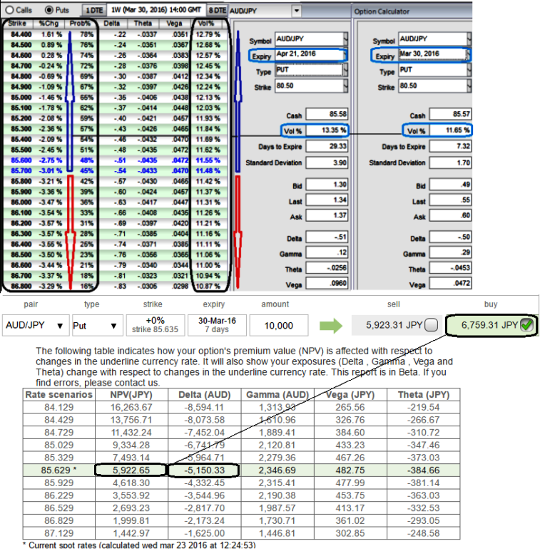 We know that the Vega is the sensitivity of an option’s value to a change in volatility (ATM vega is at JPY 482). It is usually expressed as the change in premium value per 1% change in implied volatility.