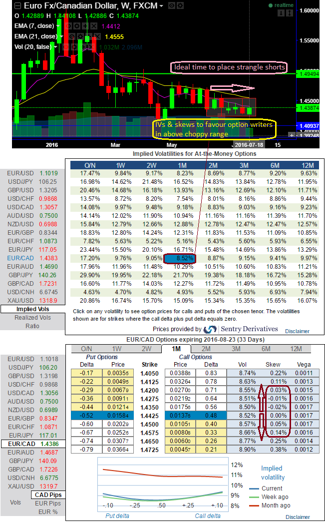 At current spot at 1.4385 the pair moving in non-directional trend and with stagnant IVs, keeping these factors into consideration we would like to place below trade positions to achieve certain returns through shorting a strangle.