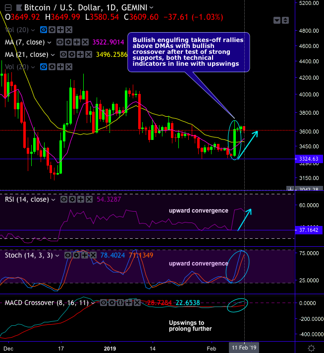Bullish engulfing occurrence at $3,622.59 levels has taken off rallies above DMAs with bullish DMA and MACD crossovers after the test of this strong support, while both technical indicators are in line with the upswings, which demonstrates a strong rejection by the bulls after the bulls found support late on Friday.
