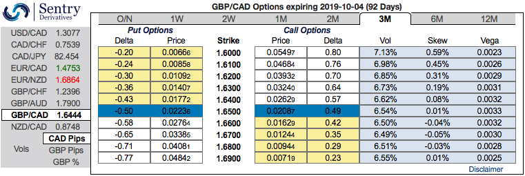 The positively skewed GBPCAD IVs of 3m tenors have still been signaling bearish risks, the hedgers’ interests to bids for OTM put strikes up to 1.60 levels indicating downside risks in the medium terms (refer 1stchart). Please observe above technical chart for the major downtrend.