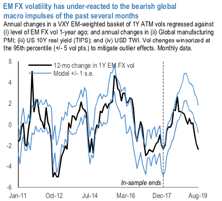 It is a little surprising then that EM FX vols have under-reacted so severely to the bearish global impulses that have been in train all year.