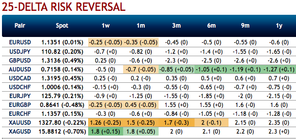 One could see fresh negative bids in the existing bullish risk reversal setup. To substantiate the above bullish sentiment, risk reversal numbers indicate an overall bullish environment.