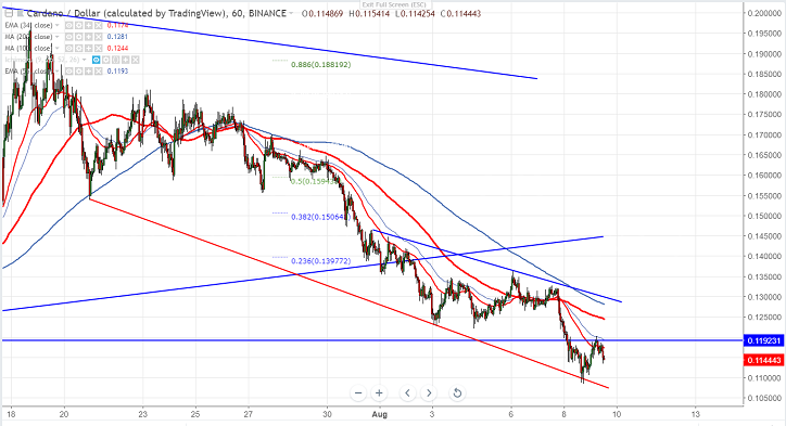The pair has shown a minor recovery after hitting low of $0.1070 level. ADAUSD has lost more than 90% from the all-time high of $1.13900 level. Cardano CEO Hoskinson has updated that Cardano 1.3 coming soon and version 1.4 will go for QA process after Sep 4th.