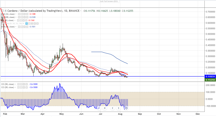 The pair is consolidating in narrow range after a minor recovery of more than 15% from the low of $0.1070 level. ADAUSD has lost more than 90% from the all-time high of $1.13900 level. Cardano testnet launched to focus on Smart contracts “Translation”.