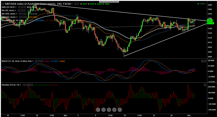- ASX has made high of 5283 and declined till 5232 (50 day 4 HMA) and started to recover from that level.The index is consolidating around 5270 and is trading around 5265.