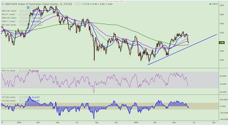 - ASX200 has made a low of 5150 and slightly recovered from that level. It is currently trading at 5180.
