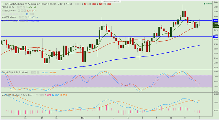 - ASX200 pares losses made yesterday and slightly jumped till 5367 at the time of writing. It is currently trading at 5346.
