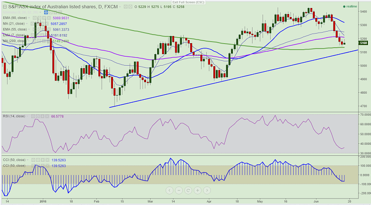 - ASX200 has recovered till 5198 at the time of writing from the low of 5143 made yesterday .The index has not able break above 5200 and has started to decline from the high made today. It is currently trading at 5170.