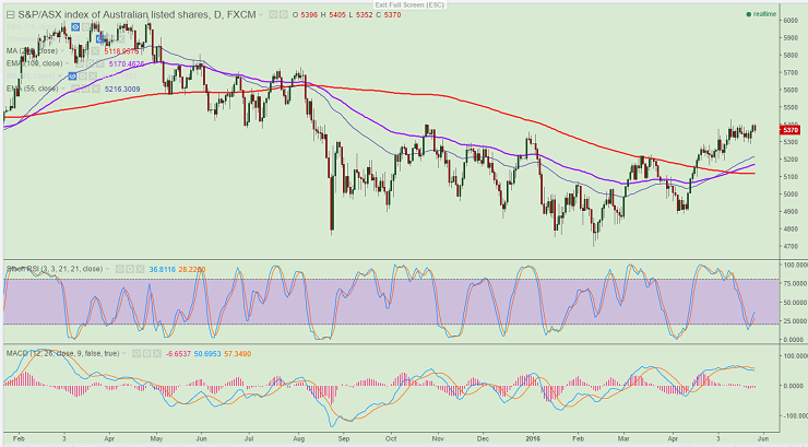 - ASX200 has made a high of 5403 yesterday . The index has not able hold above 5400 and started to decline from that level. It is currently trading at 5368.