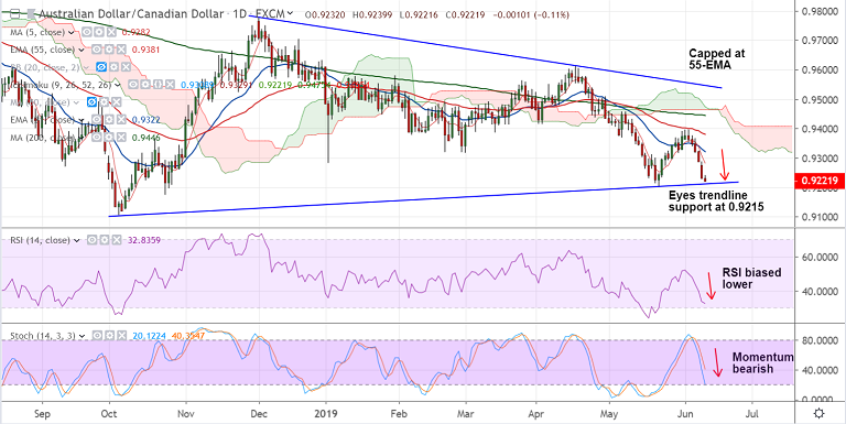 5-DMA is immediate resistance at 0.9281. Bearish invalidation only above 55-EMA.