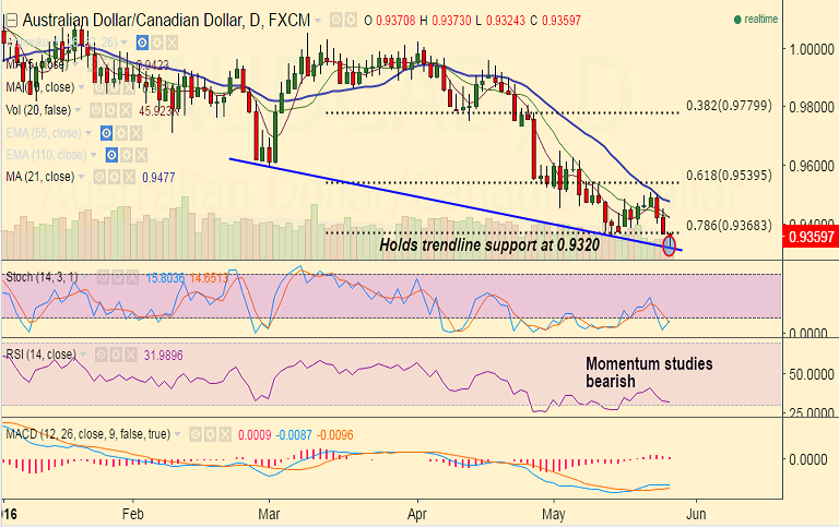 - On the daily charts, AUD/CAD has taken major trendline support at 0.9320 and edged higher to currently trade around 0.9360 levels.