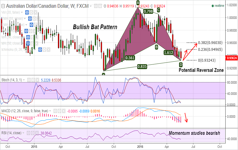 - 'Bullish Bat' pattern evidenced on AUD/CAD weeklies.