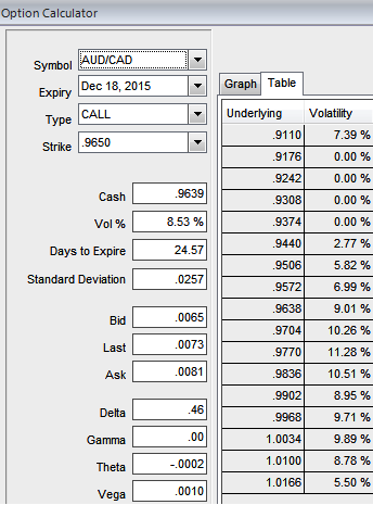 As shown in the diagram, the IV of AUDCAD is at 8.53% which is reasonable to enter into contract.
