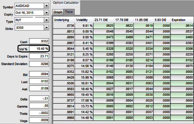 How could it serve volatility objective: But IV of ATM contracts AUDCAD has just been slightly inching over 10.30% or so, hence, the position is a spread with limited loss potential, but varying profit potential. The degree of profit relies on the strength and rapidity of price movement. The position uses long and short puts in a ratio, such as 2:1 or 3:2, to maximize returns. In most long/short spreads, you make money if the pair moves, but you lose if it remains in the middle "loss zone." A ratio put backspread is different because it creates a net credit, so even if the stock price does not move very much, you keep the credit if all of the puts expire worthless.
