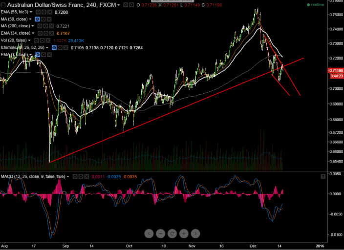 - AUD/CHF has made low of 0.7046 (Dec 11th low) which is acting as temporary support and break below targets 0.6992/0.6919 (61.8% retracement of 0.6803 and 0.75489).