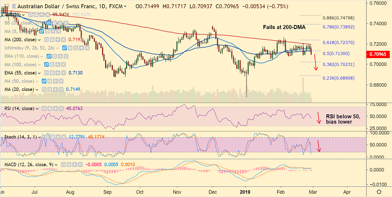 - The pair has been rejected at 200-DMA and we see upside only on break above.