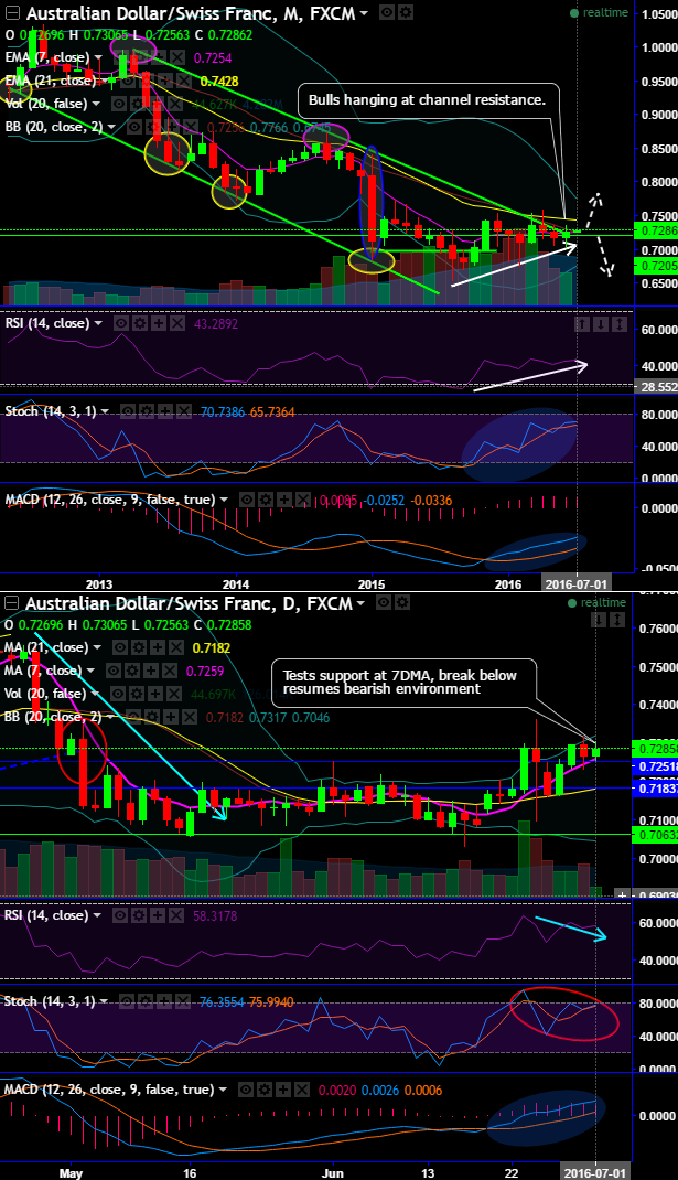 Hence, contemplating this consolidation pattern, we think this pair is likely to drag the rallies up to 0.7428 levels in the medium run.