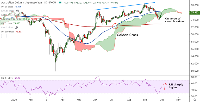Summary: AUD/JPY is extending gains for the 4th straight session and bullish momentum is likely to drive prices higher. Watch for breakout above daily cloud for further gains. Scope for test of 61.8% Fib at 78.67.