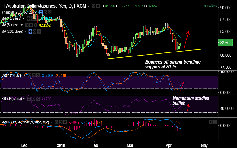 - Pair has broken above 5-DMA at 82.16, weakness only below 80.90 (trendline support).