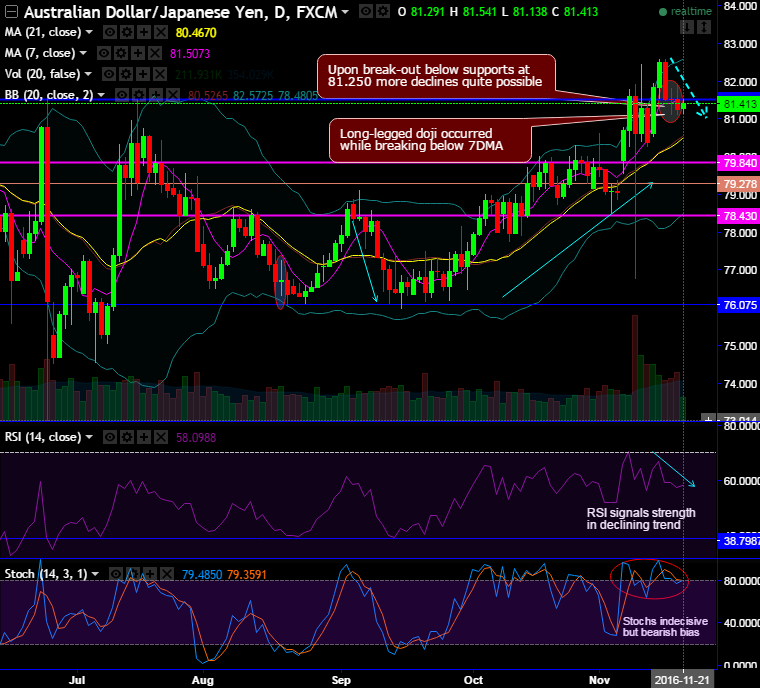 The current prices have gone below 7DMAs, please also be advised that the long-legged doji occurred at 81.529 levels while breaking below 7DMAs.