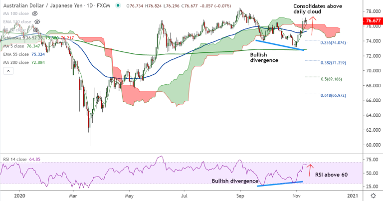 The pair is consolidating break above daily cloud and outlook for the pair remains bullish.