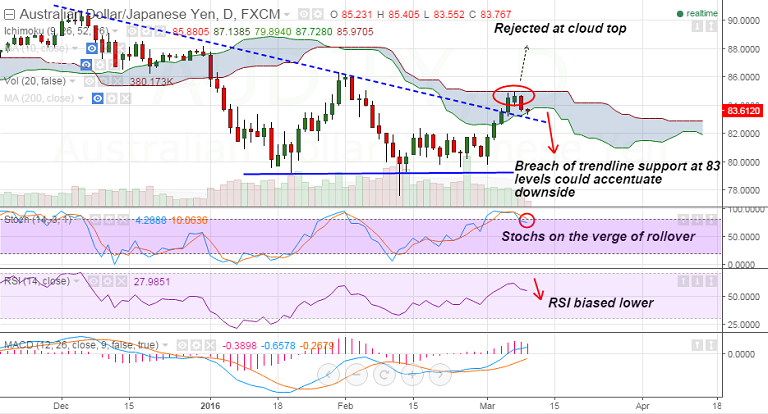 - Our call (http://www.econotimes.com/FxWirePro-Cloud-top-capping-upside-in-AUD-JPY-good-to-sell-rallies-174347) is progressing.