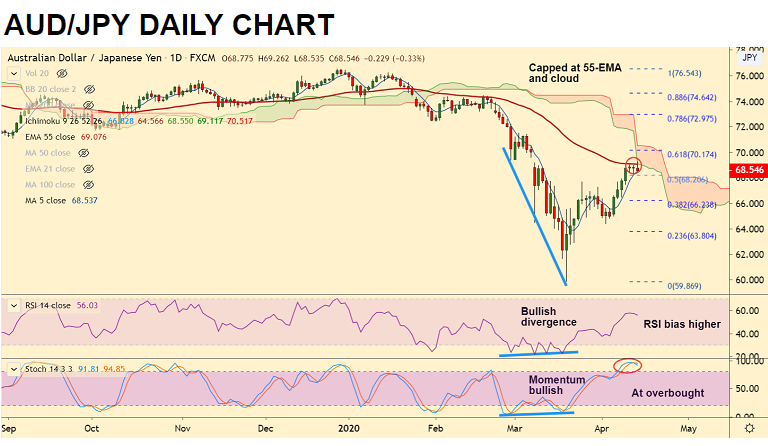 The pair is finding stiff resistance at 55-EMA and daily cloud, any further upside only on break above.