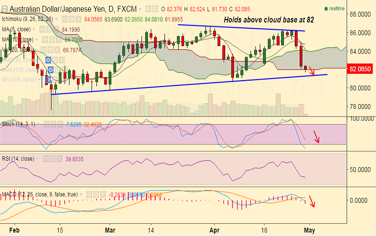 FxWirePro: AUD/JPY holds above cloud base at 82, break below could test 81.30