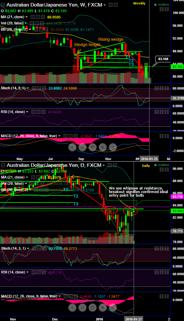 Even though we spot out a likely dragonfly doji at 83.168 which is a bullish pattern on weekly graph, the pair is currently testing a crucial resistance at around 83.495 levels, for now it seems unlikely to breach that level.