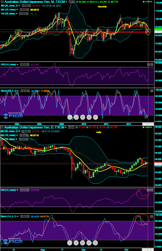 This APAC pair held firmly the strong support (at 84.304 region) on monthly charts, you can figure out from the chart that the yellow circled areas served as the strong demand and supply levels for this pair couple of times in the past as well.
