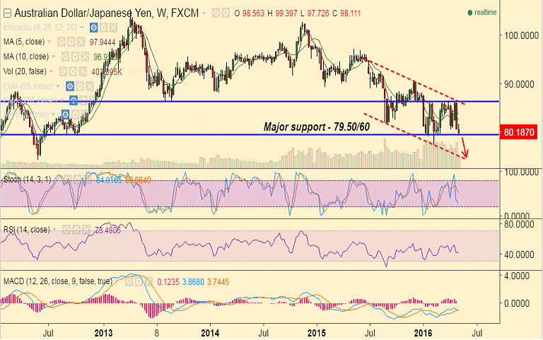 - Major support is seen around 76.50 to 79.60 zone. Breaks below could see test of 77.60 level.