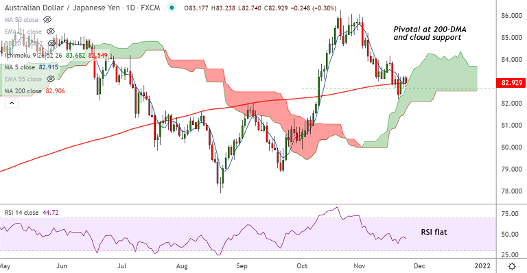 The pair is extending sideway grind along 200-DMA, finds major support at daily cloud.