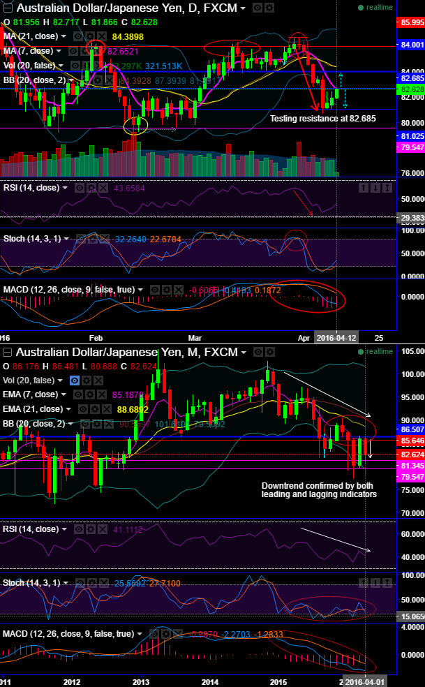 On a broader perspectives, you can figure out from the monthly chart that the attempts of recovery has been suppressed at 85.646 from last couple of months to signify weakness and as a result prices have dropped well below 21 &7EMA curves as the strong supply seen at current stage.