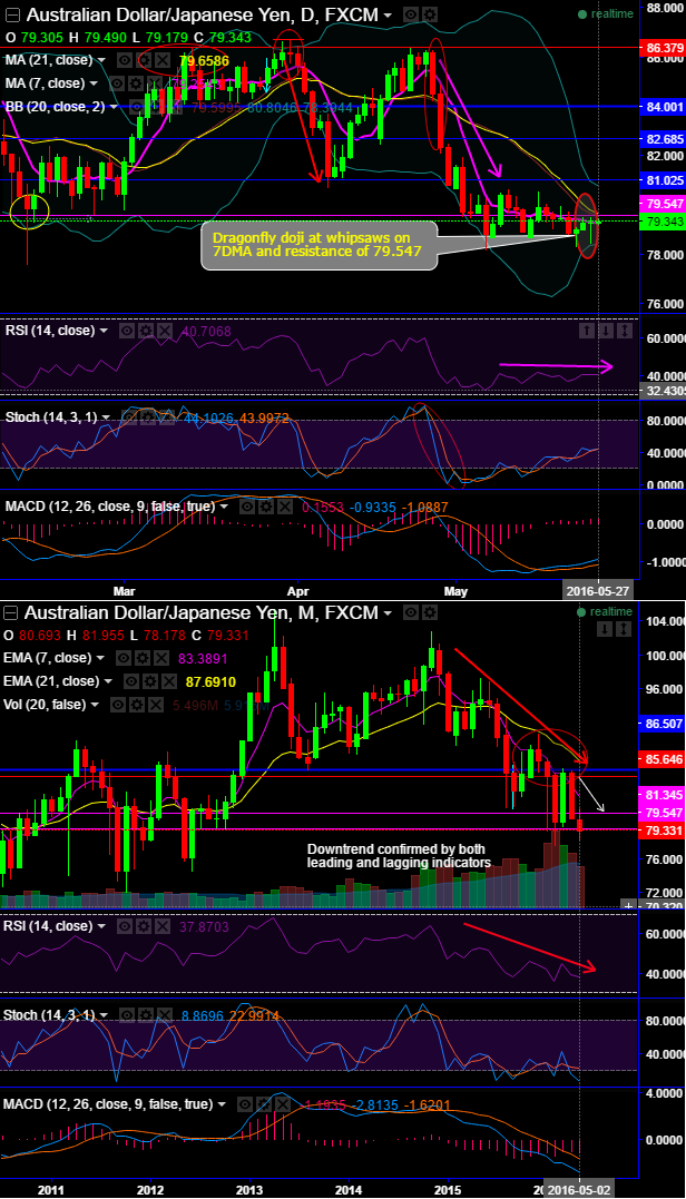 As a result, we've also traced out a "dragonfly doji" pattern candle at 79.305 levels, this bullish pattern appearing at stiff resistance signifies the pair holding stronger at this level.