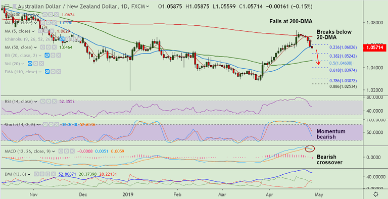 - Scope for weakness till 50-DMA at 1.0464. Bearish invalidation above 200-DMA