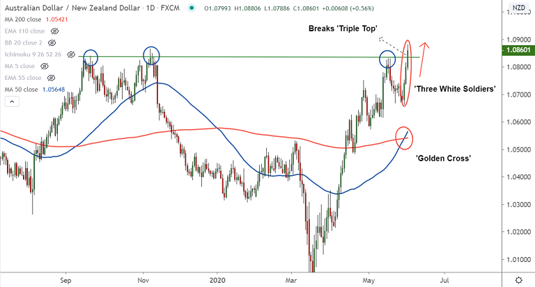 AUD/NZD has gained over 1.20% for the week till date after the pair has bounced off 200W MA support with a 'Hammer' formation in the previous week.
