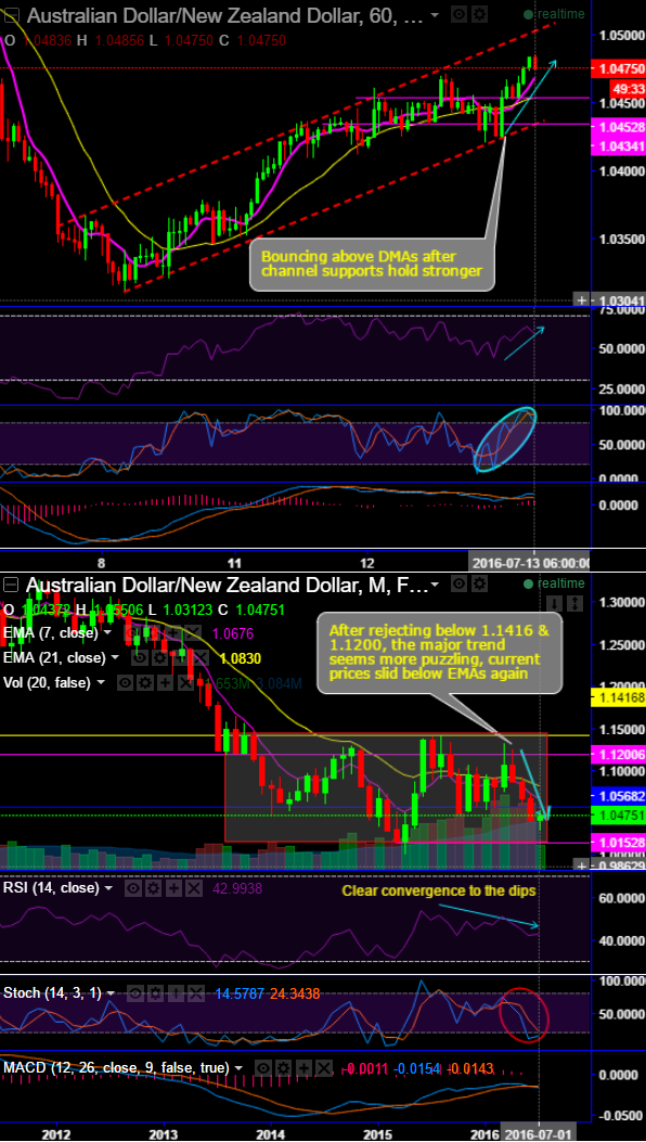 In the intraday rallies, AUDNZD surpasses major bullish focal points ever since it has taken supports at channel supports (see intraday 1H charts).