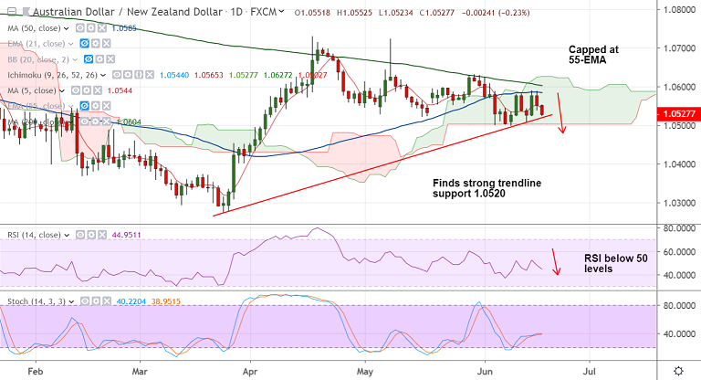 The pair failed to break stiff resistance at 50-DMA and is extending weakness for the 2nd straight session.