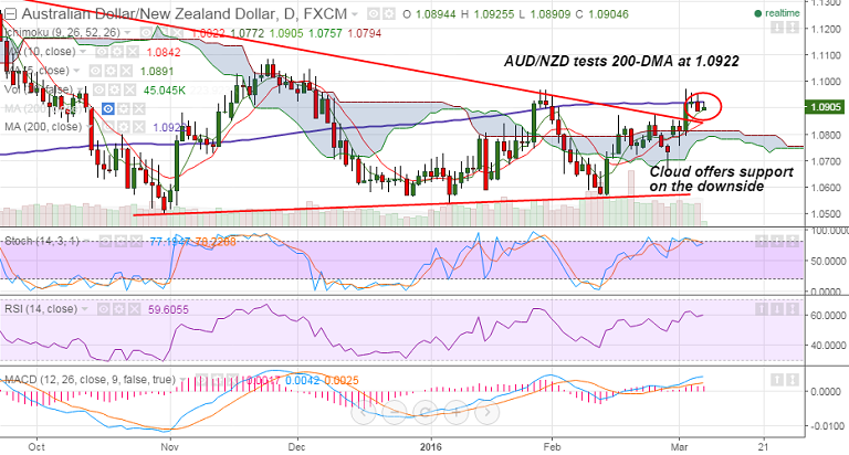 - Immediate support and resistance are located at 1.0842 (10-DMA) and 1.0922 (200-DMA) respectively.