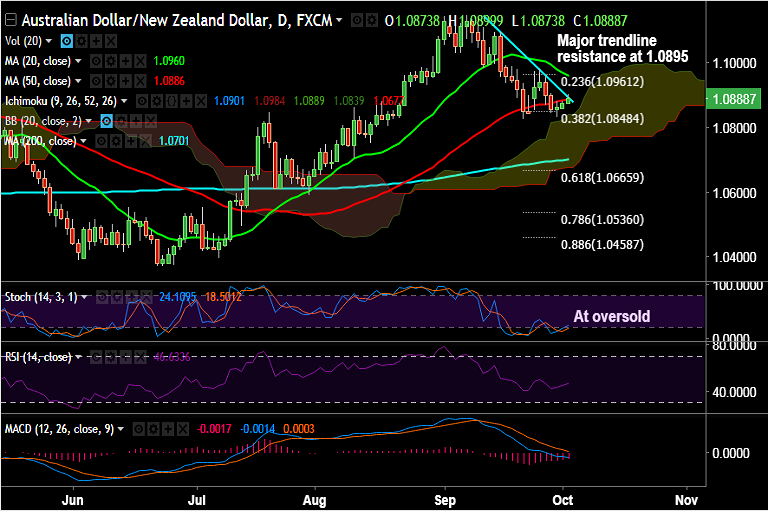 Resistance levels - 1.0895 (trendline), 1.0960 (20-DMA), 1.0978 (Sept 26 high)