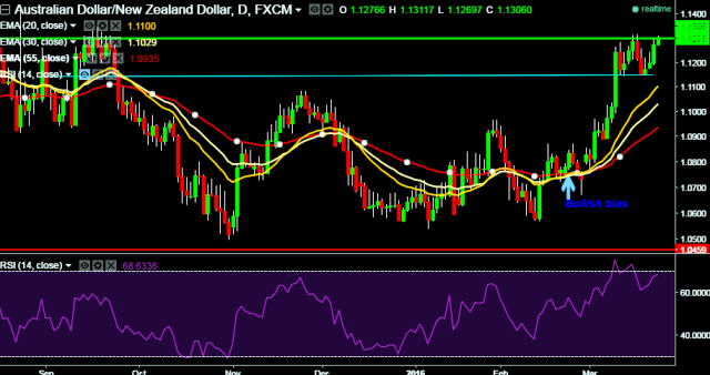 We prefer to take long position in AUD/NZD only above 1.1317, stop loss 1.1189 and target 1.1392/ 1.1590 marks.