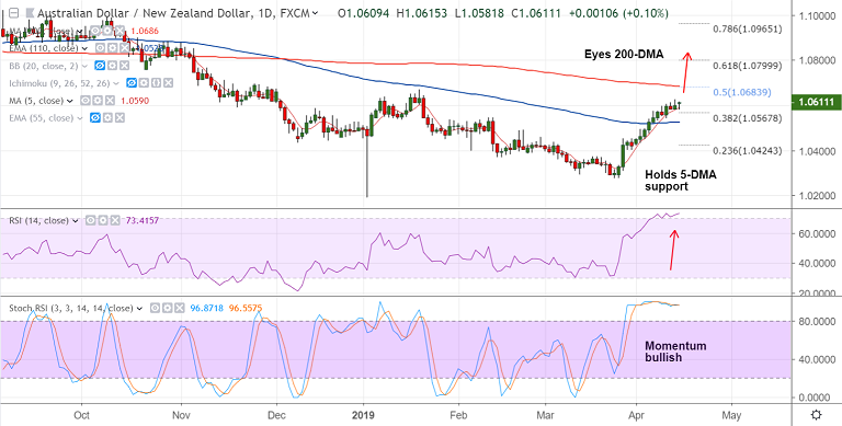 - AUD/NZD edges higher from session lows at 1.0581, bias higher.