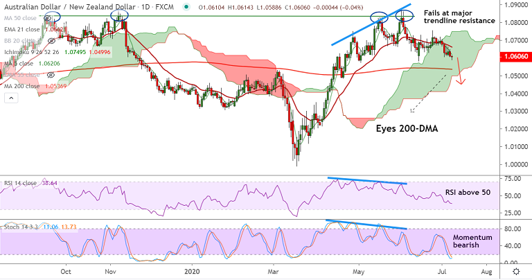Next bear target lies at 200-DMA at 1.0537. Violation at 200-DMA will open downside.