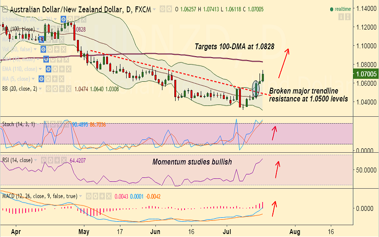 - AUD/NZD has retraced from session highs at 1.0741 and is currently trading around 1.0700 levels.