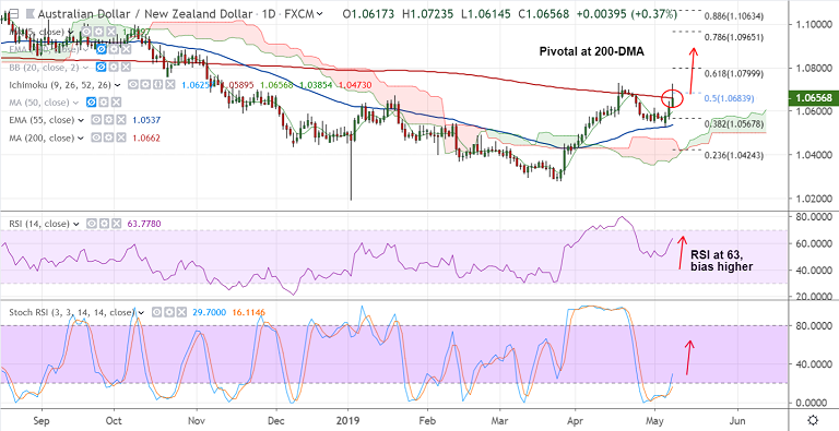Resistance levels - 1.0662 (200-DMA), 1.0729 (Apr 17 high), 1.08 (61.8% Fib)