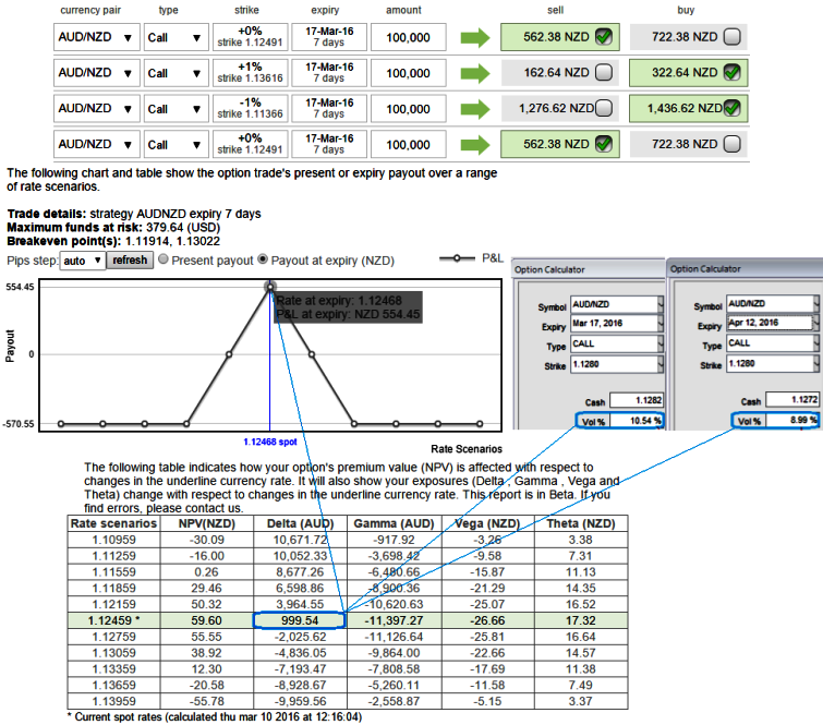A delta neutral trading strategy in this case involves the buying of a theoretically underpriced option (OTM as shown in the diagram) while taking an opposite position in EURCHF options.