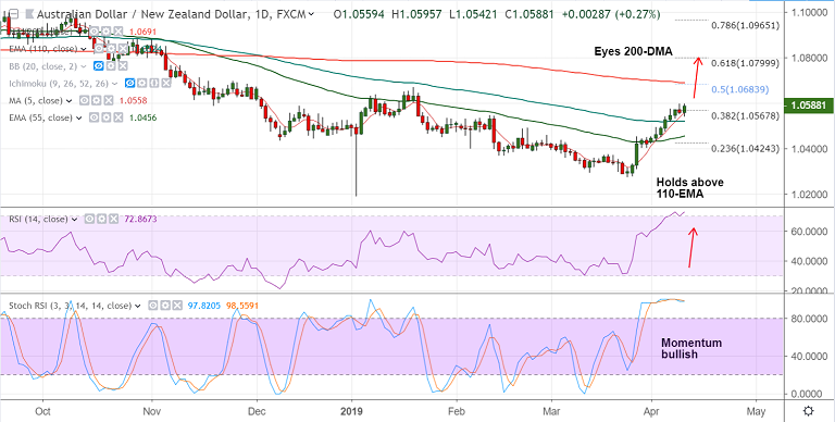 - Immediate support lies at 5-DMA at 1.0557. Break below 110-EMA to see weakness.