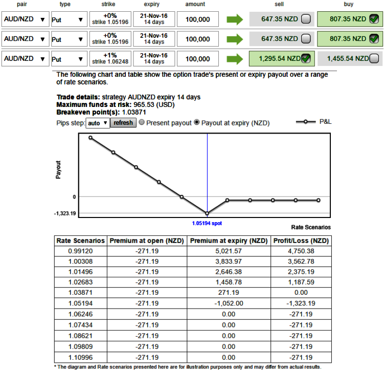 10D at the money volatilities of 50% delta calls are just shy below 10% which is reasonable as the vols currently are working in the interest of option holders as the underlying spot FX price of AUDNZD moving in sync with the corresponding movements in vega.