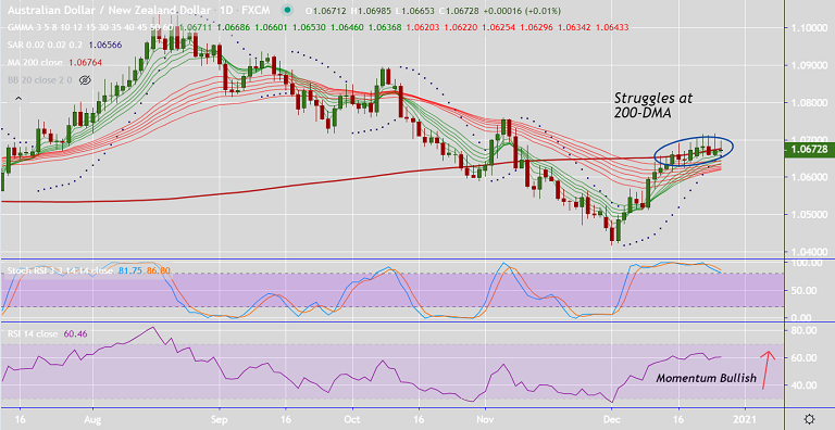 - AUD/NZD extends sideways grind at 200-DMA resistance