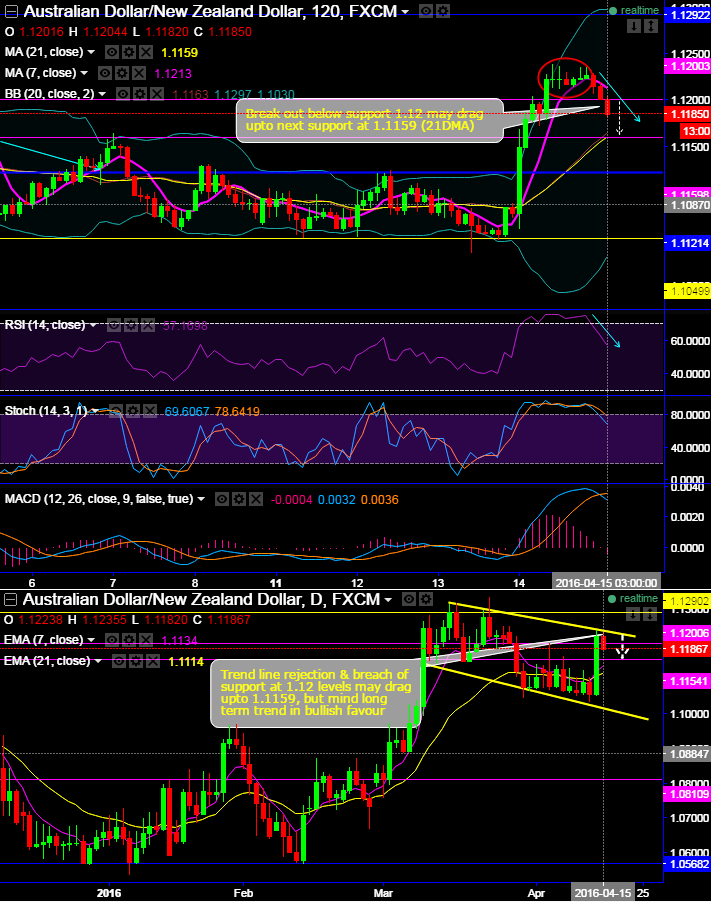 Aussie dollar’s continues streak Bull Run against Kiwi dollar has come into halt at around 1.1237 levels. That is where back-to-back “Long legged Dojis and Shooting Star” patterns occurred.